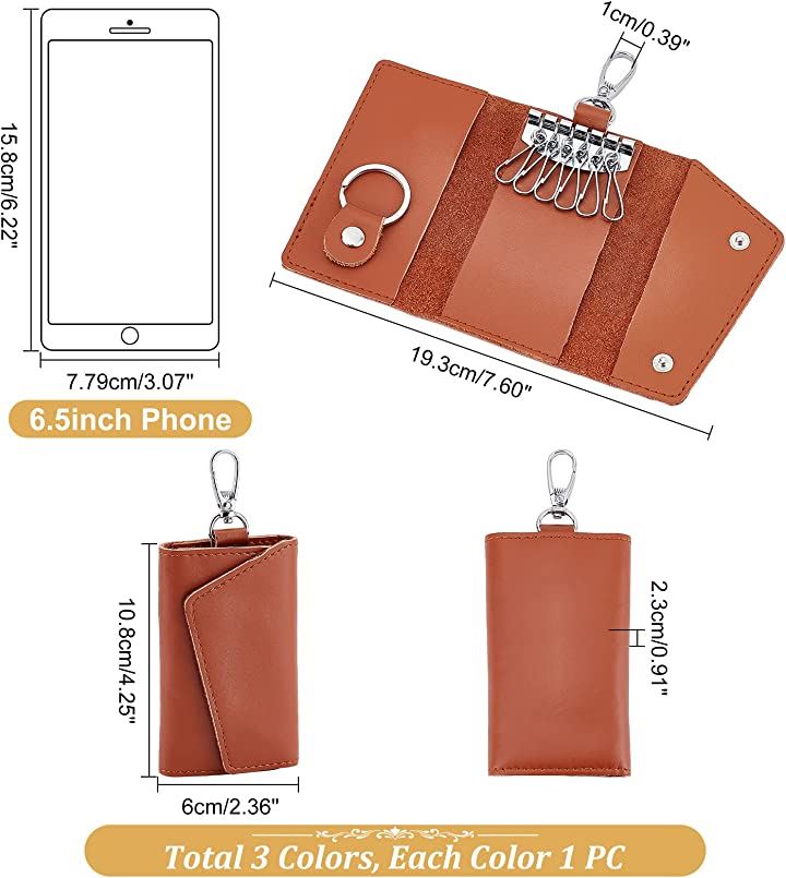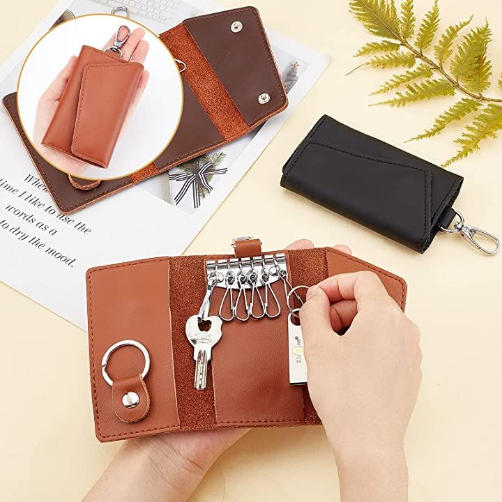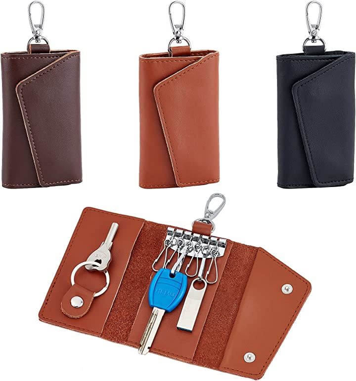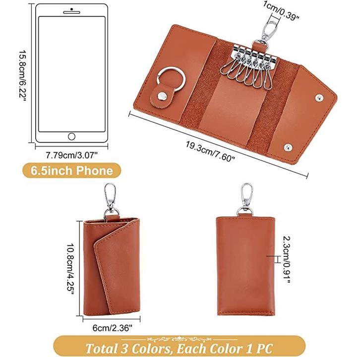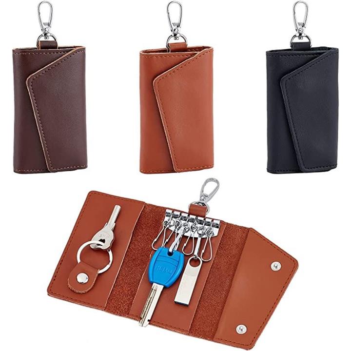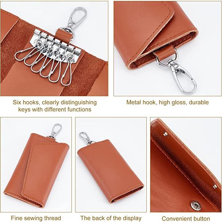 3色 革キーケース 6連 レザーキーチェーンホルダー スマートキーホルダー 小銭入れ