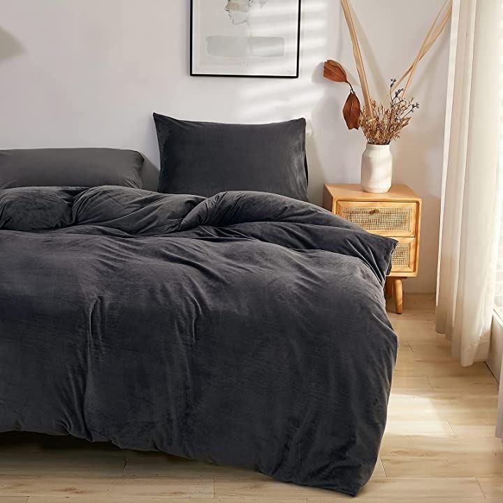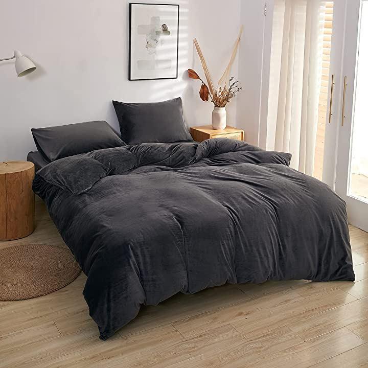 かけ布団カバー マイクロファイバー 秋冬用 あったか 静電気防止 丸洗いOK 全開ファスナー 8ヶ所紐付き セミダブル グレー 170x210cm
