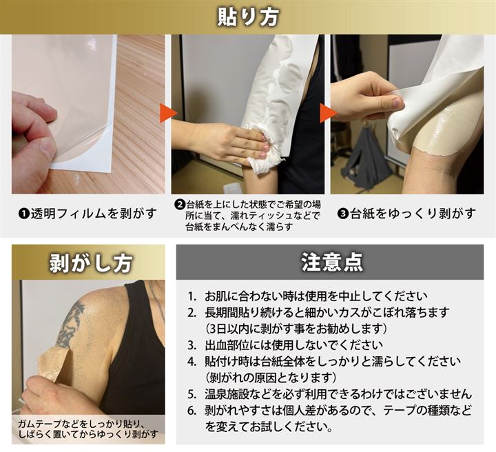 タトゥー隠し シール 刺青 入れ墨 隠す 防水テープ 大判サイズ 13x8.5cm 10枚セット