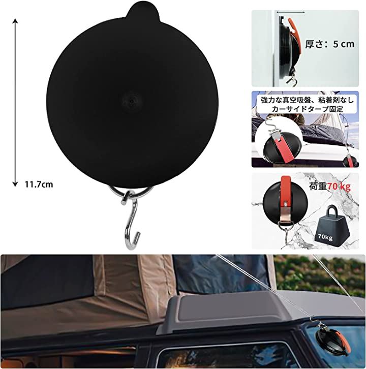 吸盤フック カーサイドタープ 吸盤 キャンプ タープ 直径11.7cm 耐荷重70kg 2個入り |