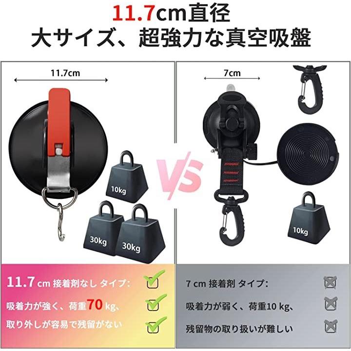 「超大型直径11.7cm吸盤、耐荷重70kgの高い吸着力」高品質のABSとPVC素材で作られた吸盤は耐摩耗性、耐久性に優れています。