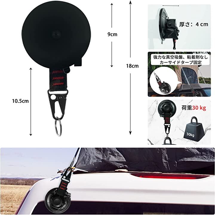 吸盤フック カーサイドタープ キャンプタープ 直径9cm 耐荷重30kg 2個入り |