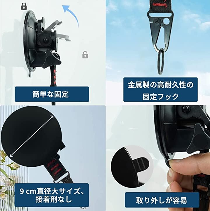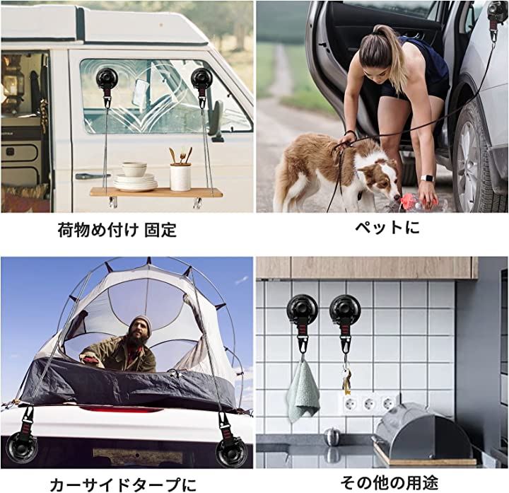 複数の用途:車のテントの固定、ペットの固定、屋外の一時的なアイテムの吊り下げ、屋内アイテムの吊り下げ