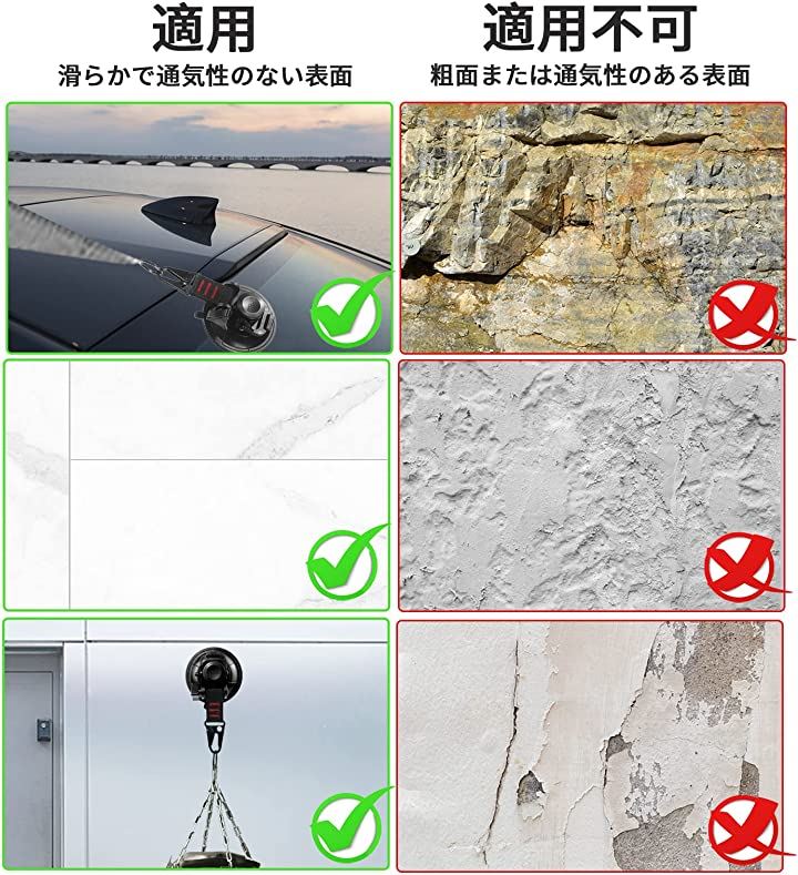 凹凸やざらざらした表面には吸着力を発揮できません。