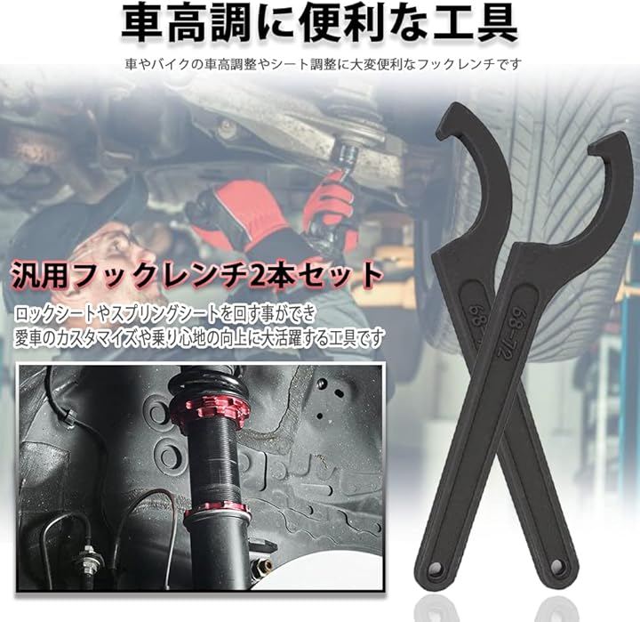 フックレンチ スパナ ピン型 車高調 薄型 引っ掛け バイク メンテナンス 修理 68~72mm 2本セット