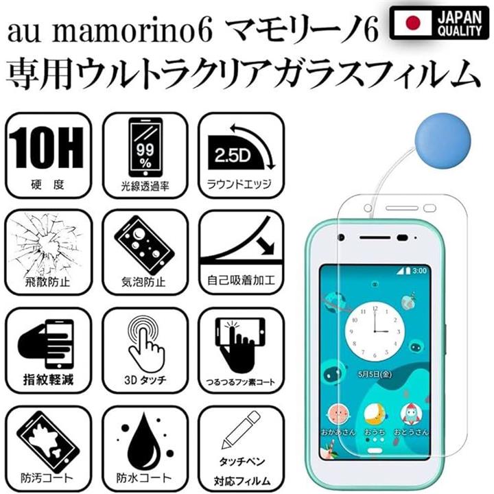 2枚セットフィルム mamorino6 マモリーノ シックス対応 ガラスフィルム 保護フィルム 強化 高透過 高光沢 日本製 旭硝子 硬度10H 2.5Dラウンドエッジ