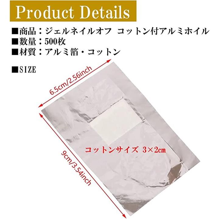 ジェルネイル オフ コットン リムーバー アセトン ジェルオフ ネイルオフ アルミ 500枚セット