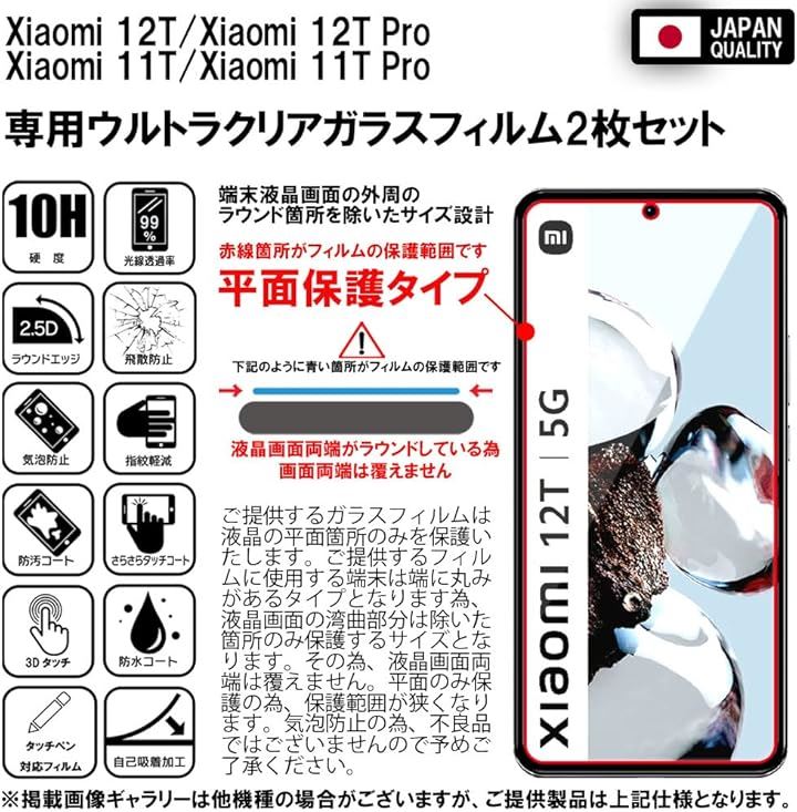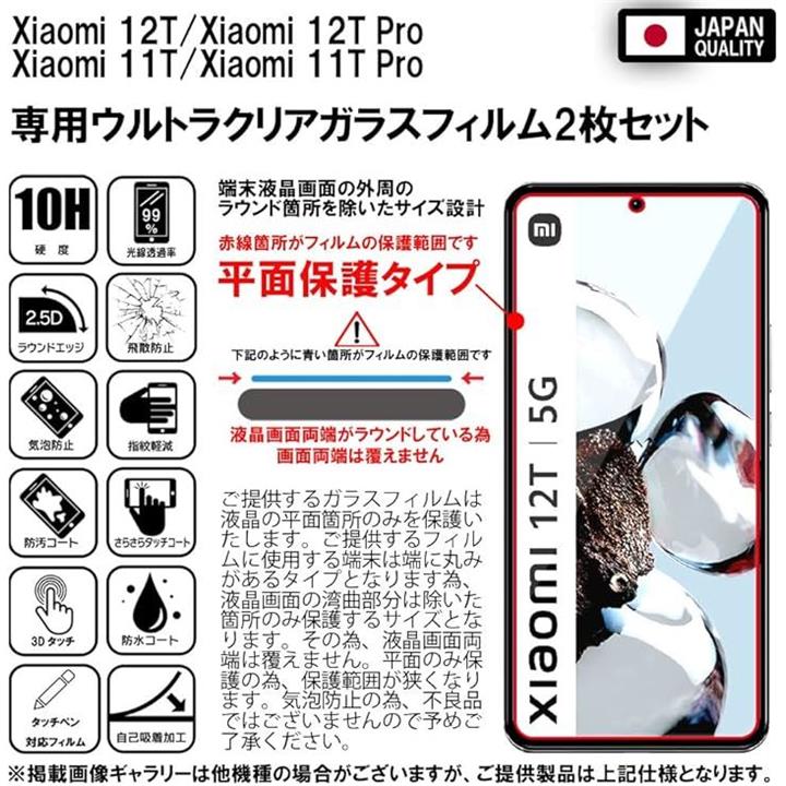 日本AGCガラスフィルム Xiaomi 12T / Pro 11T/ 用 保護フィルム 強化 高透過 高光沢 日本製 旭硝子 硬度10H 2.5Dラウンドエッジ