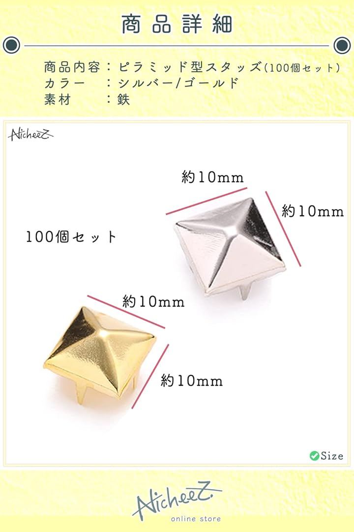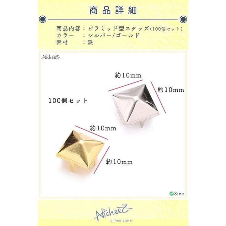 ピラミッドスタッズ 鋲 パーツ 100個セット