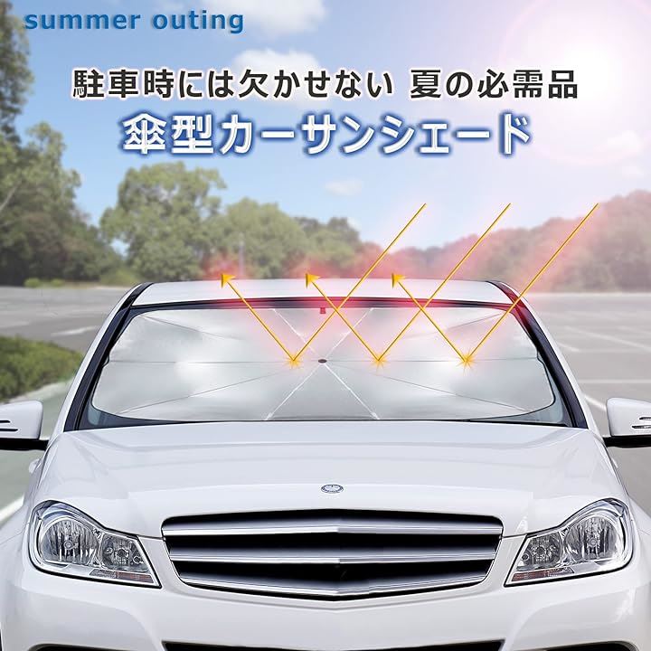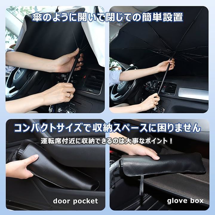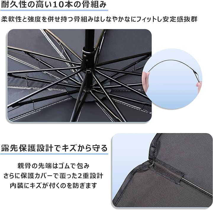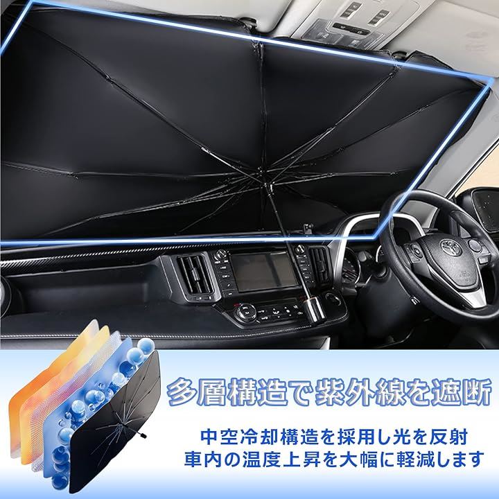 サンシェード 車 しっかり紫外線カットフロント 日除け 折り畳み傘型 設置簡単 収納便利 10本骨逆折り式 カーサンシェード