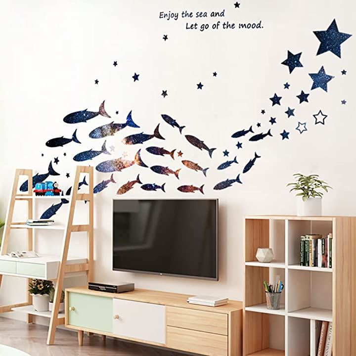ウォールステッカー 海 魚 カラフル 魚群 はがせる 剥がせる ウォールシール 壁ステッカー