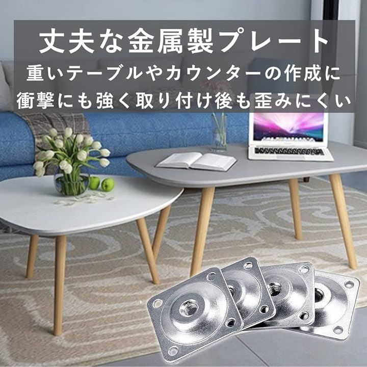 家具脚 プレート マウントプレート ソファー テーブル キャビネット 机 取り付け M8 4枚セット