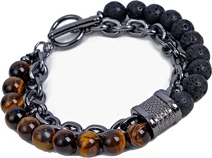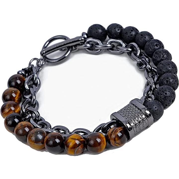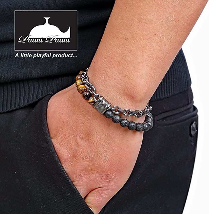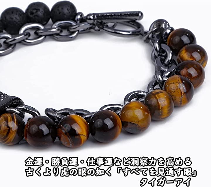 Paani Paani パワーストーン ブレスレット メンズ レディース アクセサリー (タイガーアイ&溶岩石) |