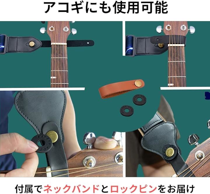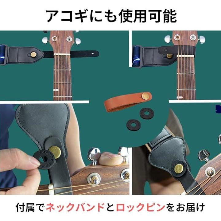ギターストラップ エレキギター アコギ ベース ウクレレ 無地 ネックバンド1個 ロックピン2個 セット