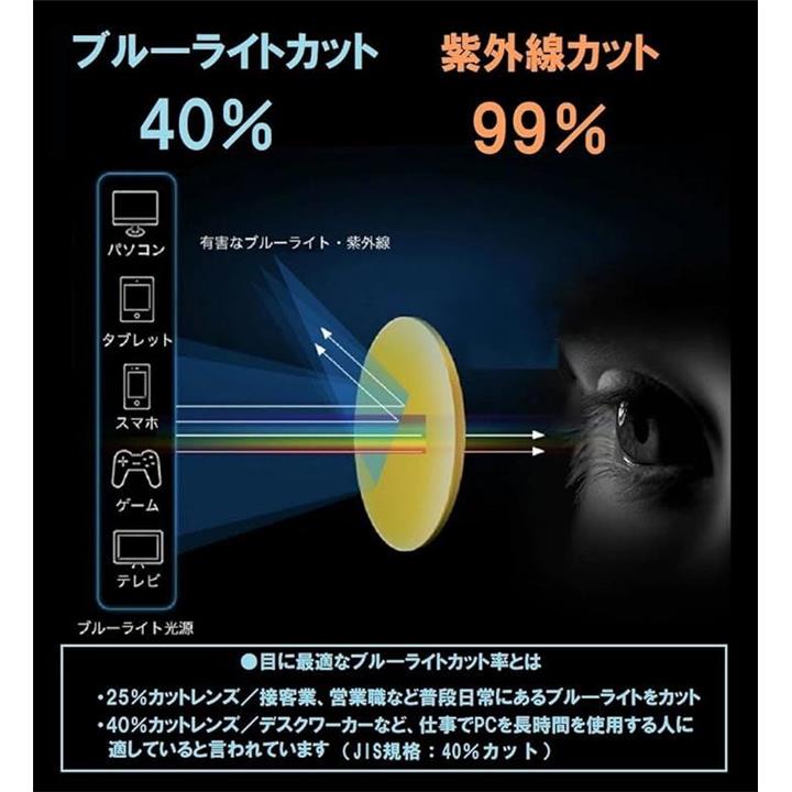 ブルーライトカット メガネ 調光 変色 パソコンメガネ PCワーク サングラス JIS規格40% UVカット99% ウエリントン型 メンズ ユニセックス 度なし