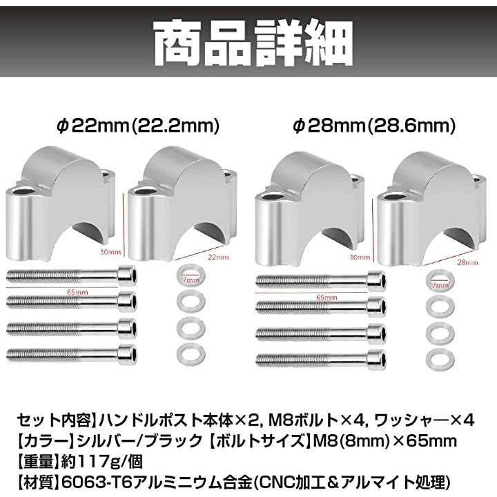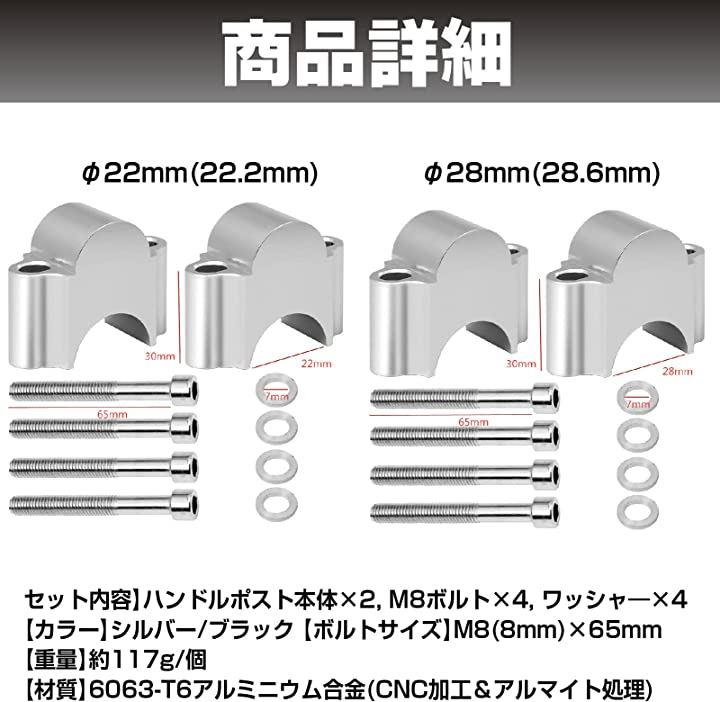 互換品 ハンドルポスト バイク 30mm アップ スペーサー バーライザー 汎用 2個セット φ28mm 28.6mm