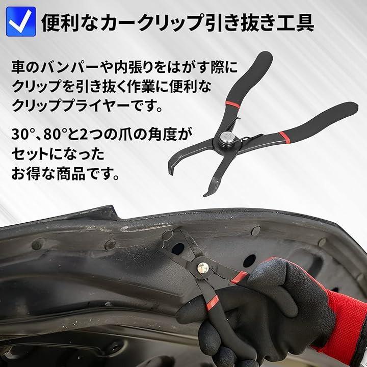 クリッププライヤー 車 クリップ外し 工具 カークリップ バンパー 内張り 30° 80°セット
