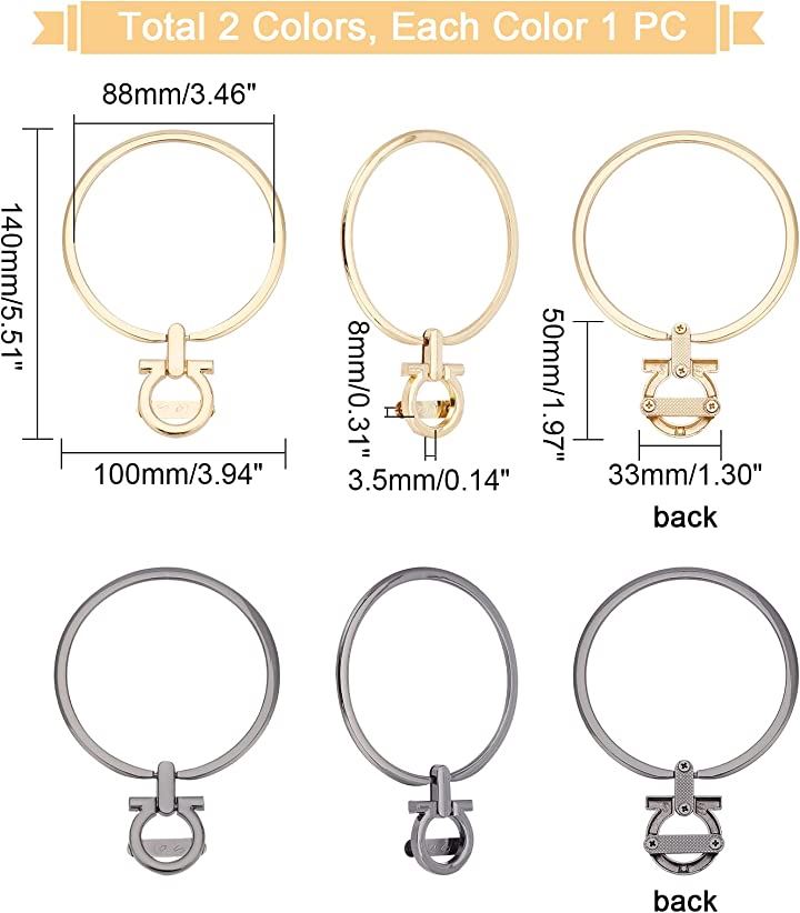 2色 金属製バッグハンドルの交換 合金 丸い形 ハンドバッグハンドル クラッチバッグフレームハンドル DIYクラフトアクセサリー