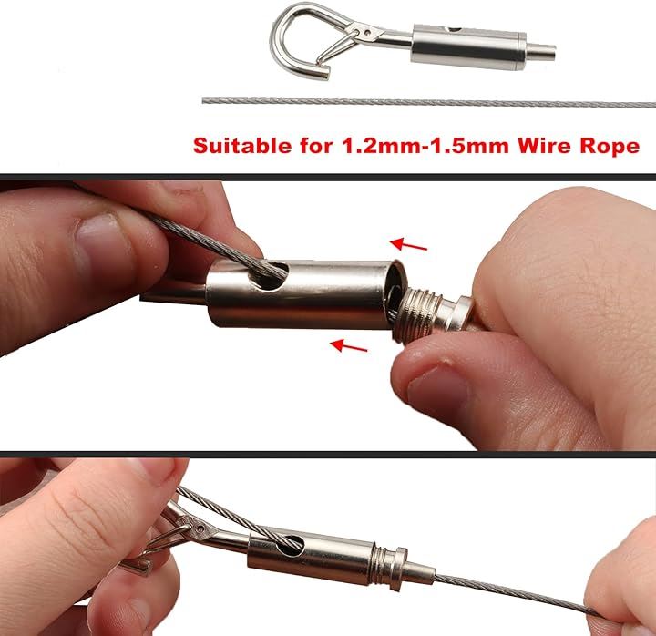 6個の調整可能なフックスチールワイヤーロープハンガー、ポータブルフック&アイターンバックルテンション