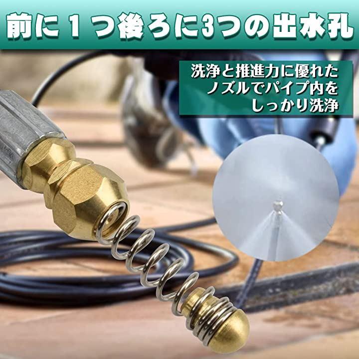 互換品高圧洗浄機用 ケルヒャー互換 パイプクリーニング 逆噴射ノズル 固定テープ 収納袋付き