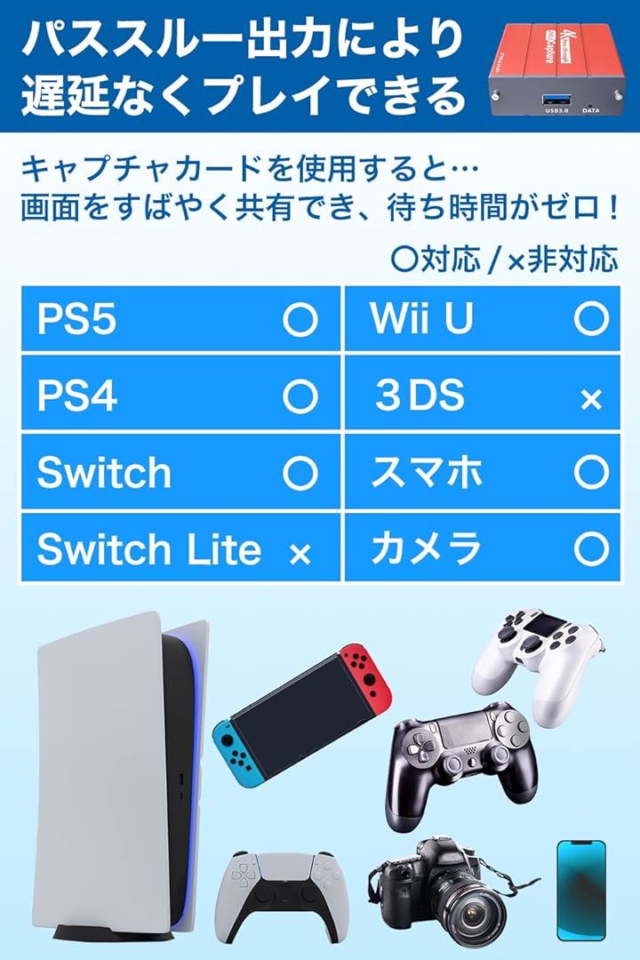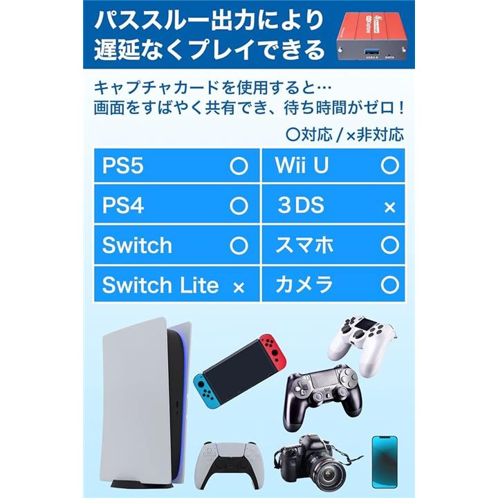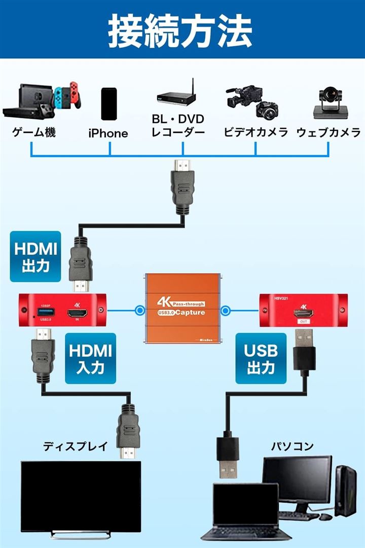 互換品キャプチャーボード ゲームキャプチャー ビデオキャプチャー 軽量小型 HDMIケーブル付き USB対応 HSV320G