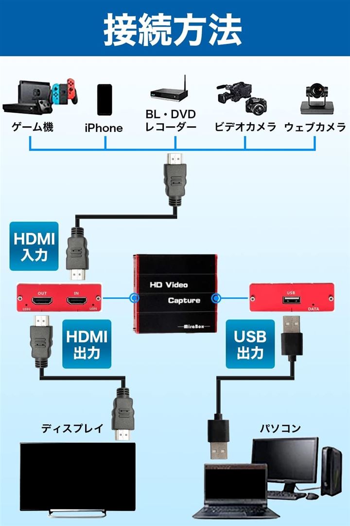 互換品キャプチャーボード ゲームキャプチャー ビデオキャプチャー 軽量小型 HDMIケーブル付き HSV320