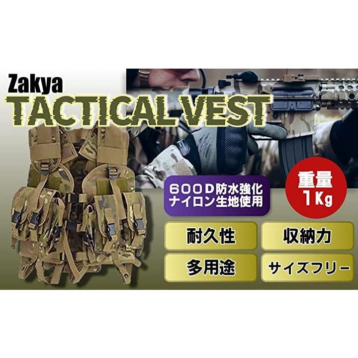 「互換品」Zakya チェストリグ サバゲー ベスト タクティカルベスト リグ プレートキャリア マガジンポーチ チョッキ アーマー 装備 ミリタリーベスト 多機能収納ポーチ(カーキ) |