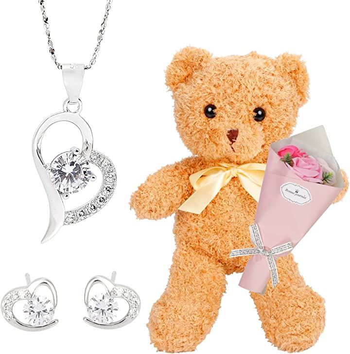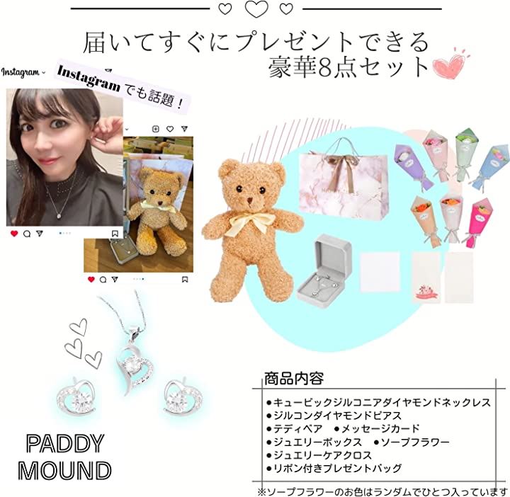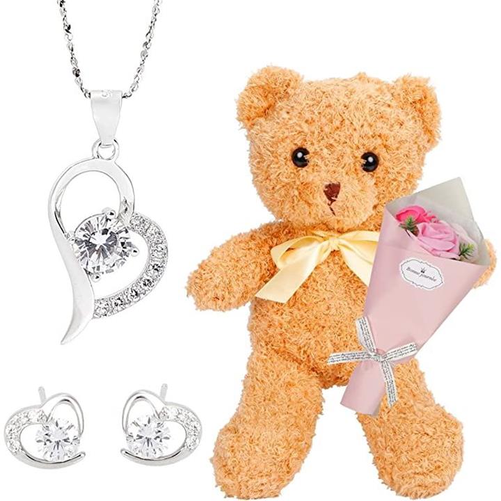 ジルコニア ジルコン ネックレス ピアス レディース テディベア 誕生日 プレゼント 女性 ハート