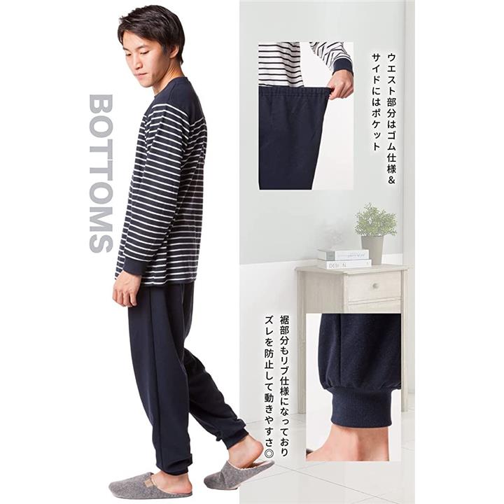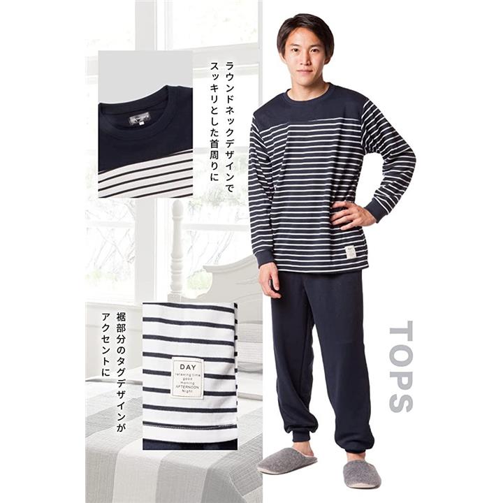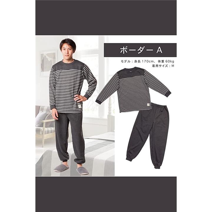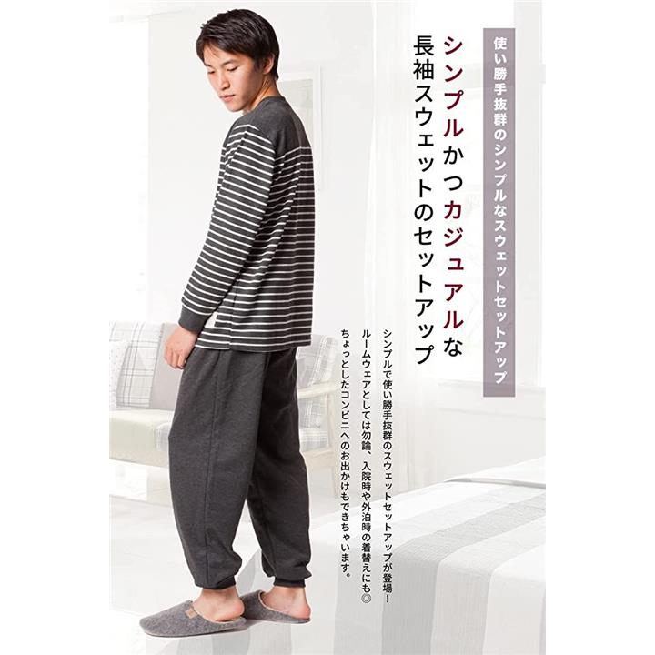 [Y's factory] スウェット セットアップ 上下セット メンズ ルームウェア 大きいサイズ ゆったり あったか 部屋着 パジャマ ボーダー 秋 冬 着心地 |