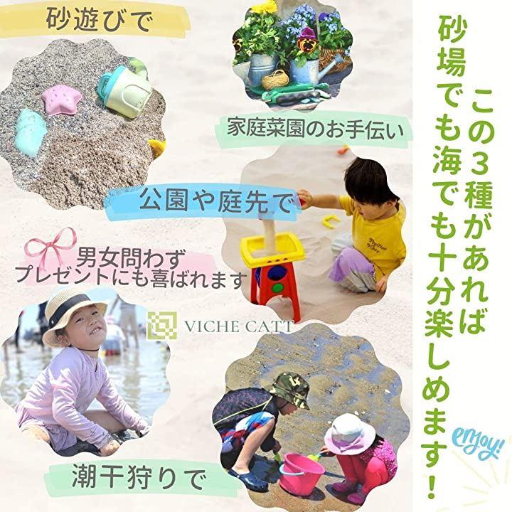 手でその感覚をいっぱいに感じることができるので、情操教育にも良いとされる砂遊び。 より楽しくする道具がこのセットで、この3種類があれば十分に楽しめます。