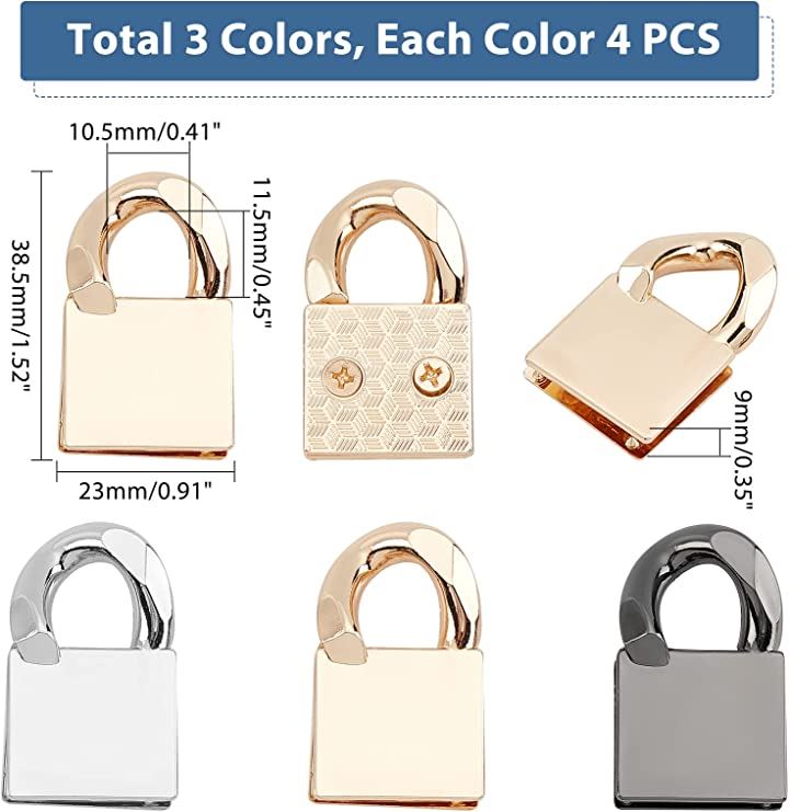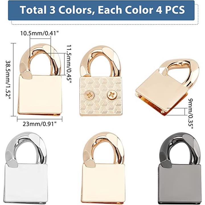 互換品 メタルサイドクリップバッグバックル 12セット 3色 バッグコネクタバックル メタルバックルトチカン レザークラフト接続バックル金具パーツ