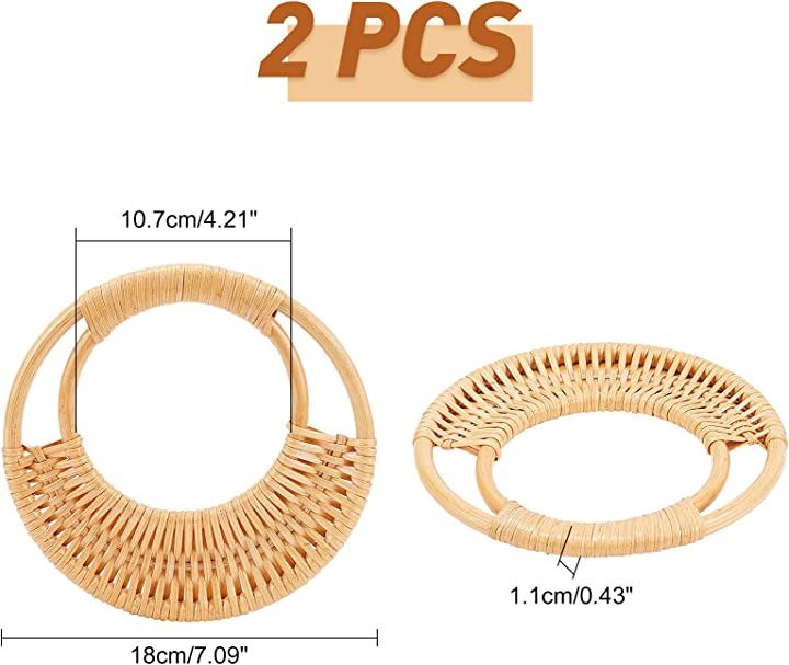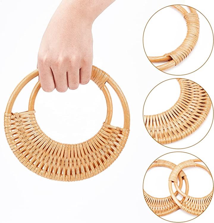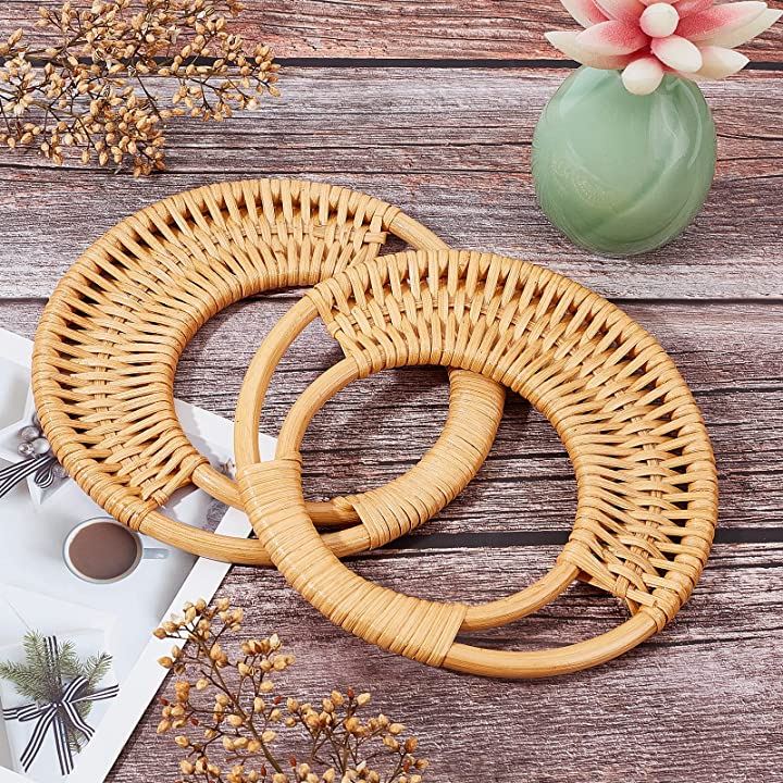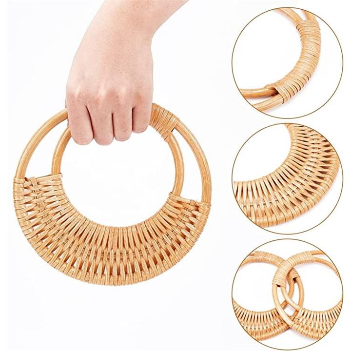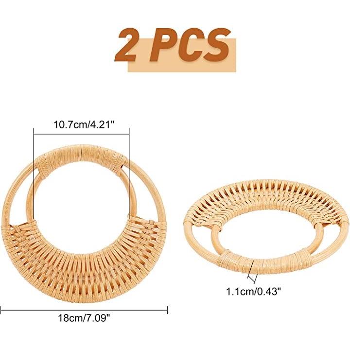 手編みバッグ持ち手 2本入り 風呂敷持ち手 籐 ラウンド ショルダー 内径10.7cm