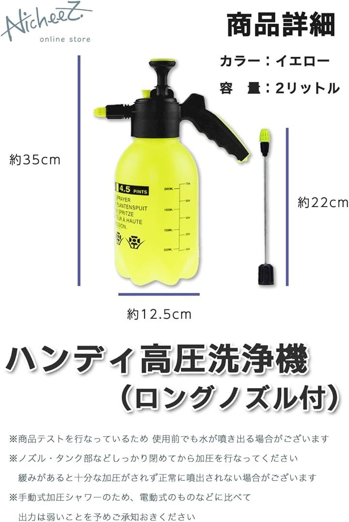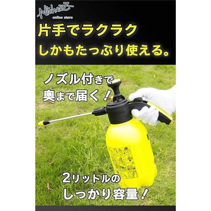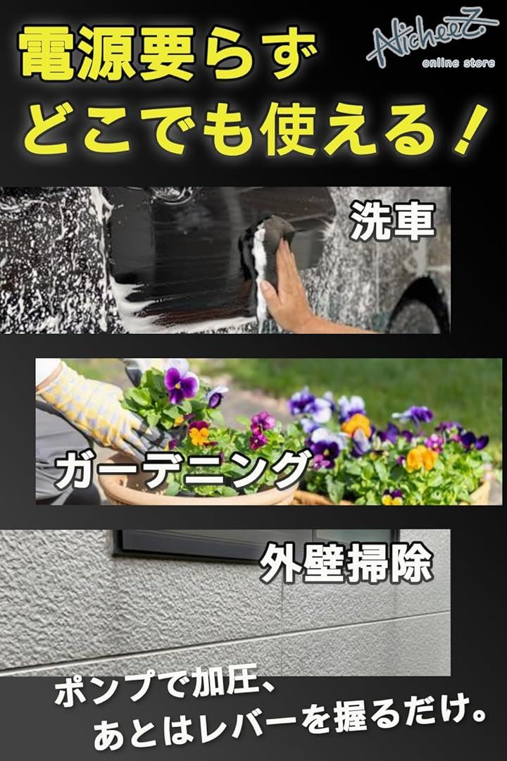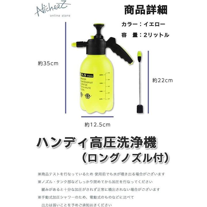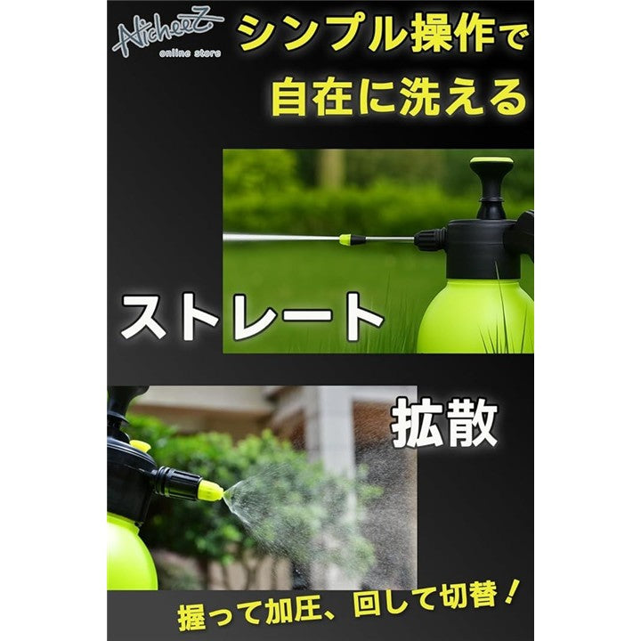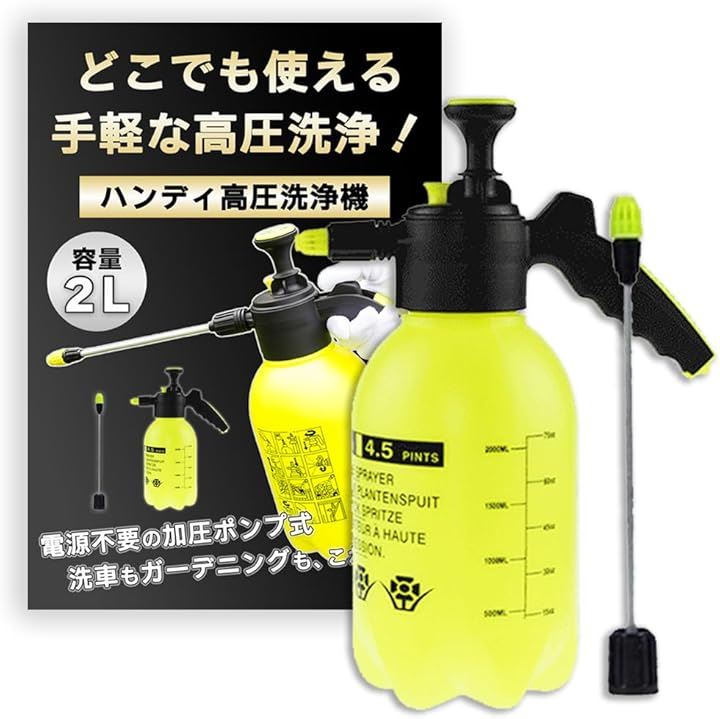 高圧洗浄機 加圧式 ポンプ ハンディ 水圧 噴霧器 コードレス 洗車 エアコン洗浄 蓄圧式 簡易 2リットル ノズルつき 電源不要