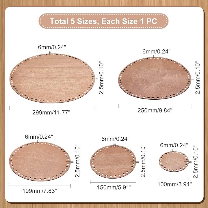 バック用底板 木製バスケット底 ハンドメイド かぎ針編みバスケット バスケットボトム 工芸品作り バッグアクセサリー 家の装飾 画板 木彫り 299/250/199/150/100mm