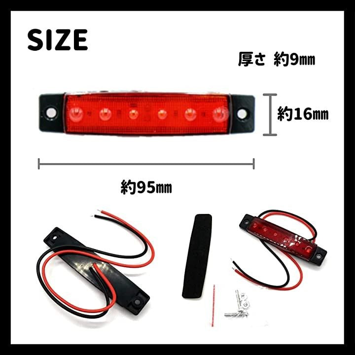 12V車用 LED サイドマーカー ランプ 6連 汎用 10個セット トレーラー 軽トラ イルミネーション デイライト カスタム 小型 角マーカー