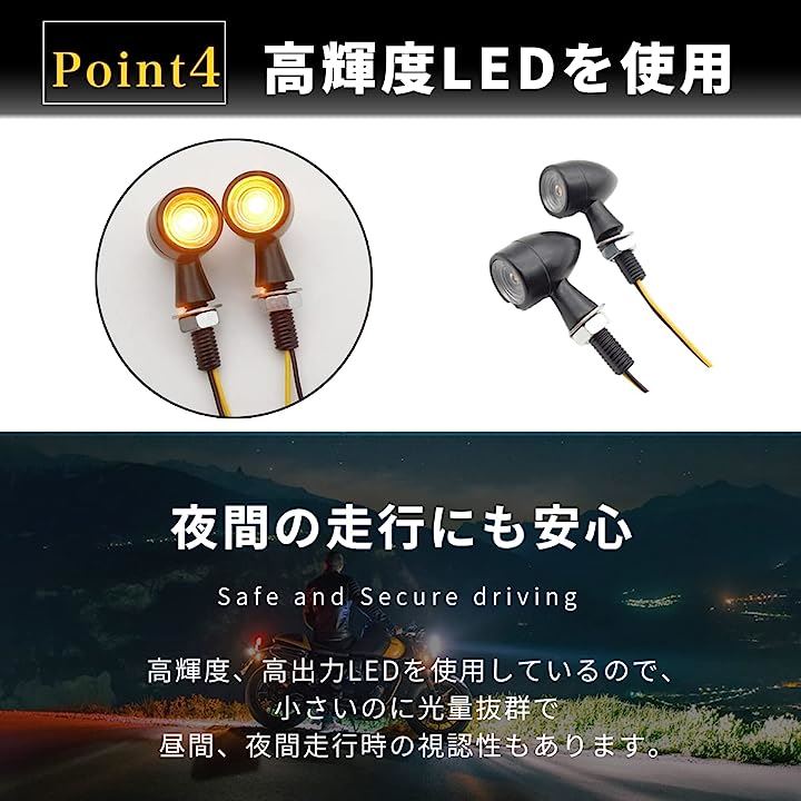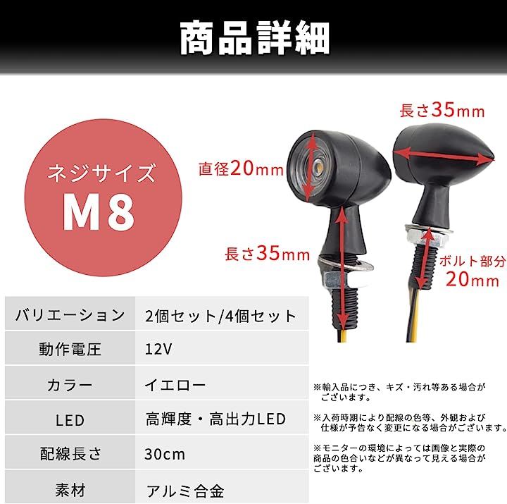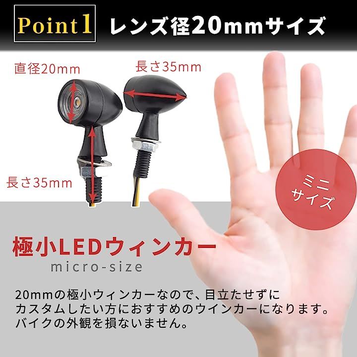 互換品ナノタイプ バイクウインカー ミニ 極小 マイクロ 砲弾型 小型 ウィンカー 汎用 ミニタイプ 高輝度 防水 クリアレンズ 12V M8 4個セット 1台分