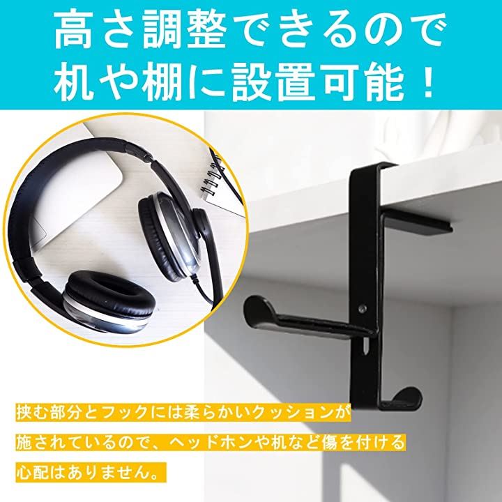 ヘッドホンハンガー クッション付き ヘッドホン掛け 接着剤不要 取り外し簡単
