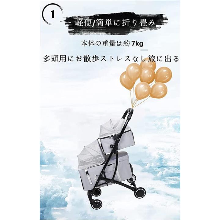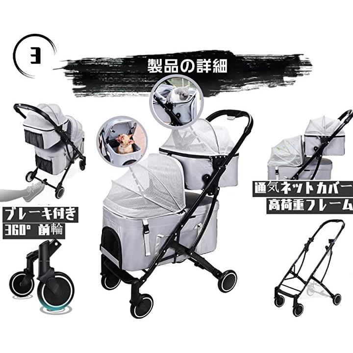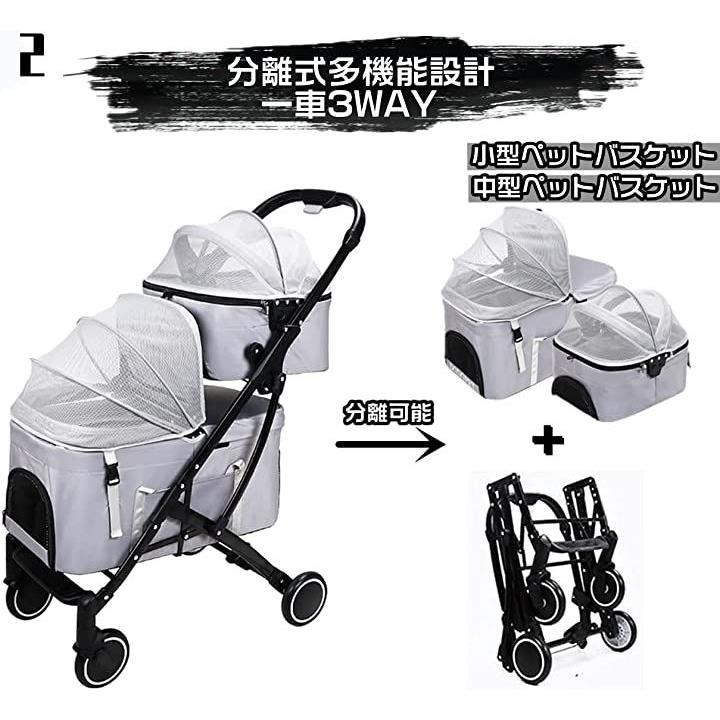 ペットカート 犬カート ペットバギー 犬用キャリーカート 二段式 多頭用 猫犬兼用 分離型 独立カゴタイプ 3way 耐荷重20kg 日本語説明書付き