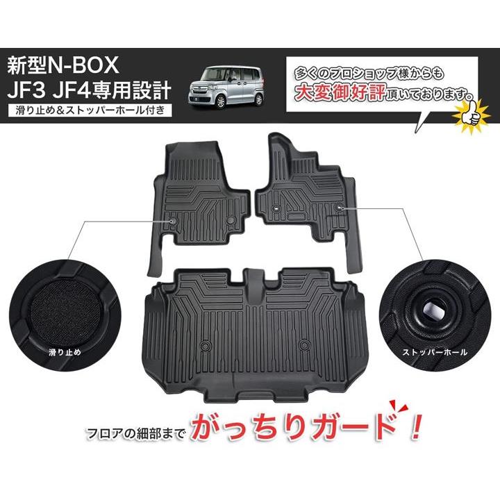 互換品ホンダ 新型 N-BOX JF3 JF4型 3Dフロアマット 立体 カーマット 防水 滑り防止 耐汚れ TPE素材 専用設計 5D HONDA 3Pセット 滑り止め&ストッパーホール付き