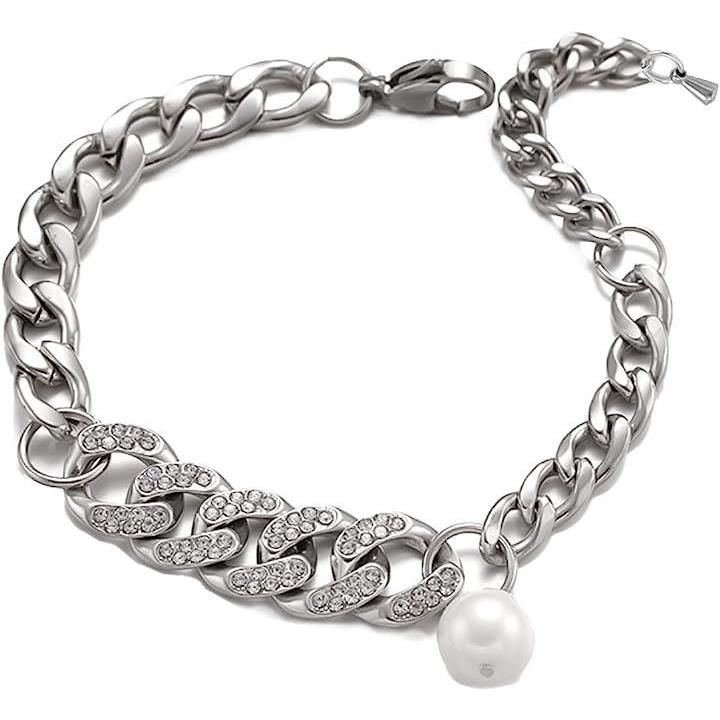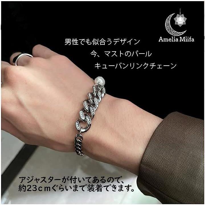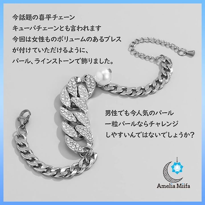 アメリア ミイファブレスレット レディース メンズ アレルギー対応 シルバー ステンレス パール ジルコニア ペア 太め