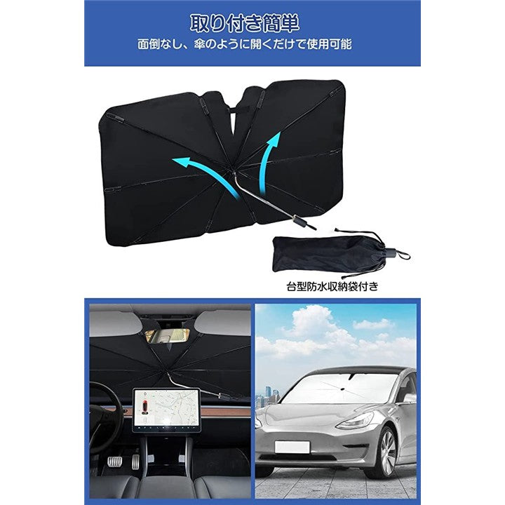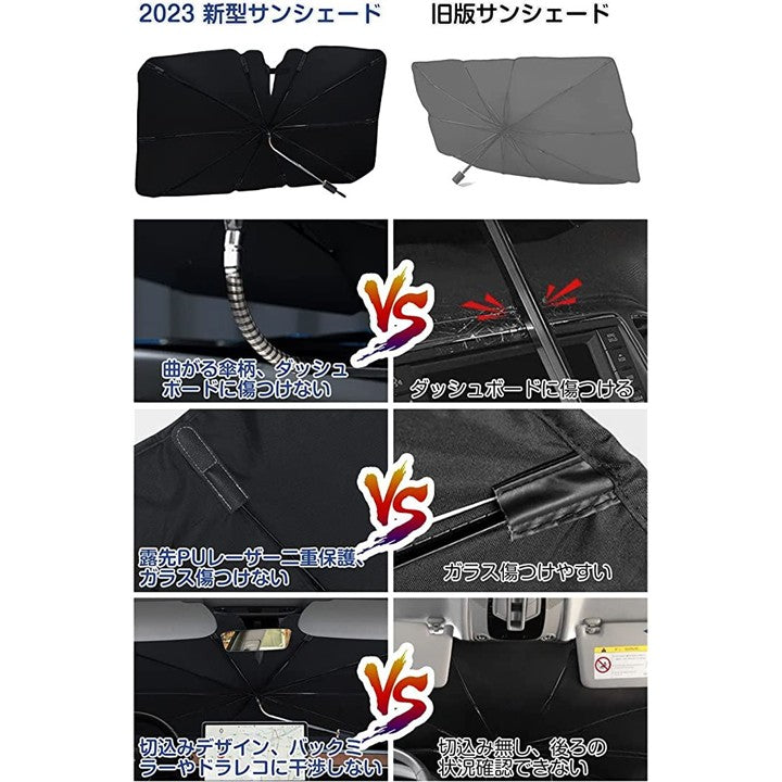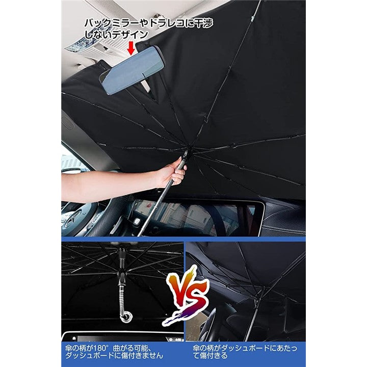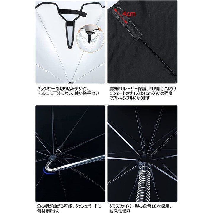 SUPTEMPO 2023 サンシェード 車 フロント フレキシブルサイズ設計 曲がる傘柄 バックミラー部切り込み 車用 サンシェード 折り畳み傘型 (L(148x83cm)) |