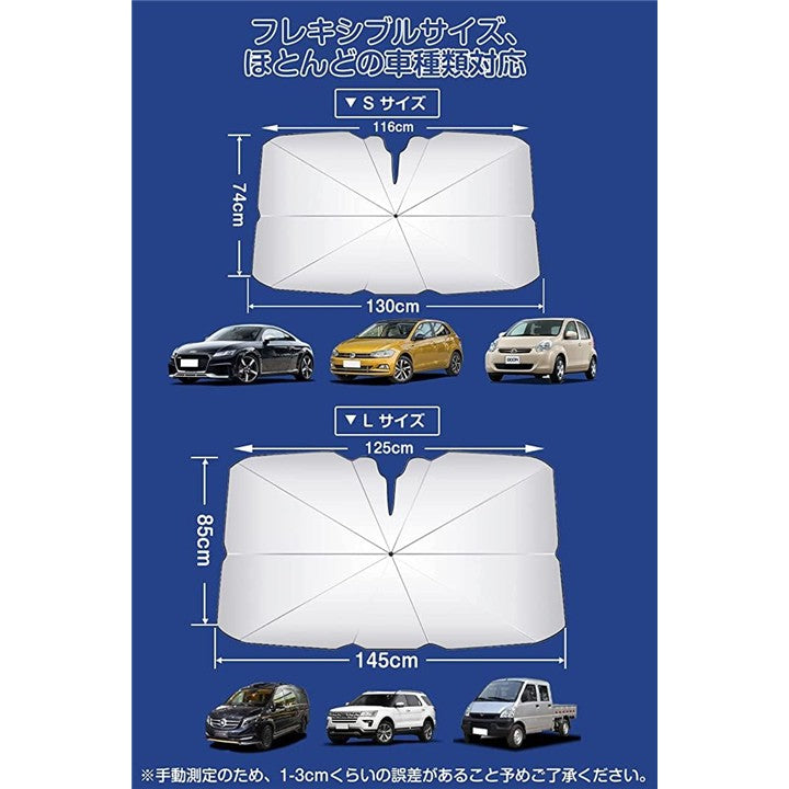 SUPTEMPO 2023 サンシェード 車 フロント フレキシブルサイズ設計 曲がる傘柄 バックミラー部切り込み 車用 サンシェード 折り畳み傘型 (S(130x74cm)) |
