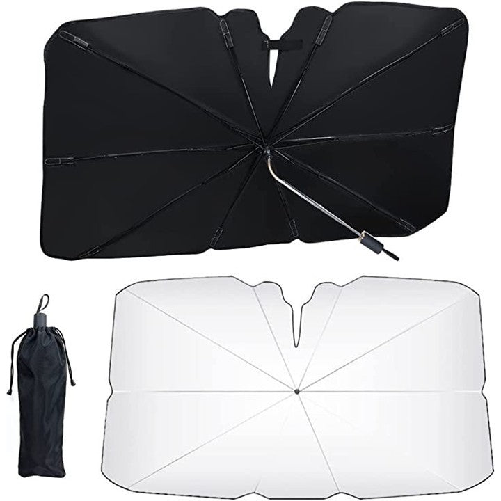 「傘柄曲がる傘型車フロントサンシェード」折り畳み傘型デザインを採用し、操作簡単。