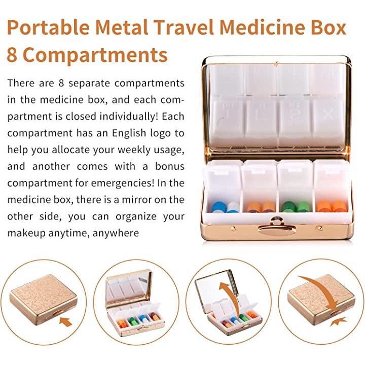 携帯用金属製トラベルメディスンボックス/3-8コンパートメント