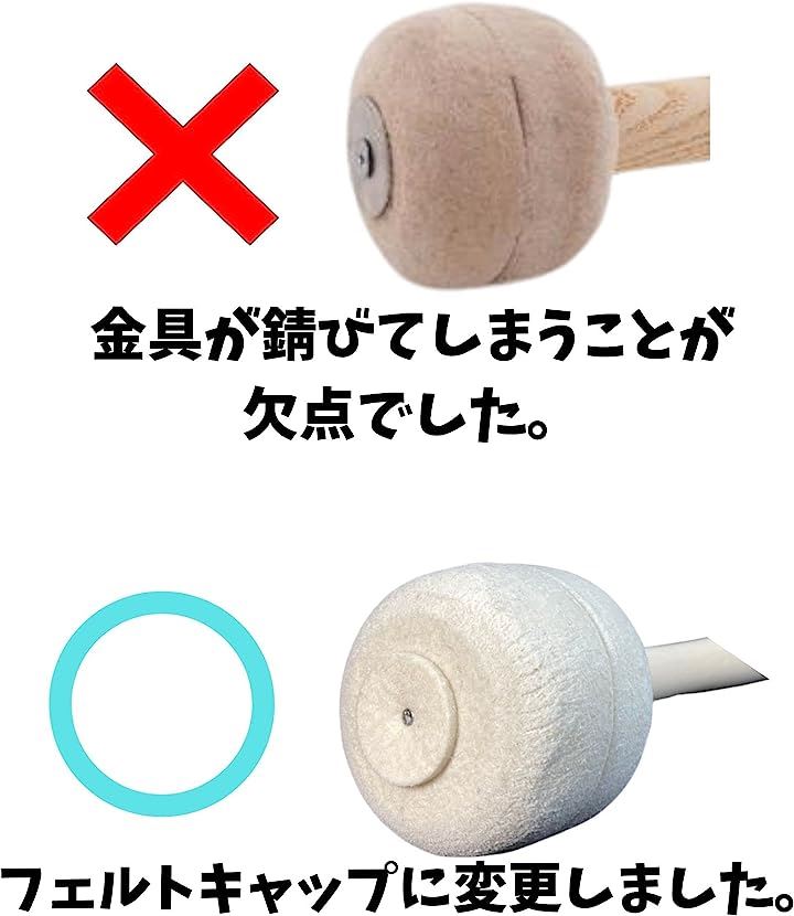 バスドラムマレット 2本セット フェルト ドラムスティックマレット ブラスバンド マーチングゴング ティンパニ 大太鼓 ホワイト