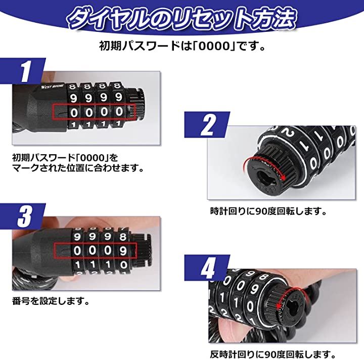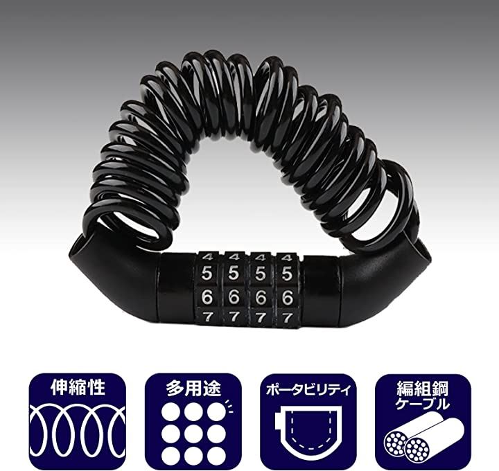 ・ダイヤル式ケーブルロック 4桁ダイヤルロック ワイヤーロック 盗難防止 盗難対策 防犯対策 サイクリング ツーリング 暗証番号 自転車 バイク ヘルメット サドル パスワードのパターンは10000通り。