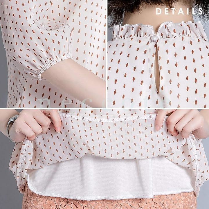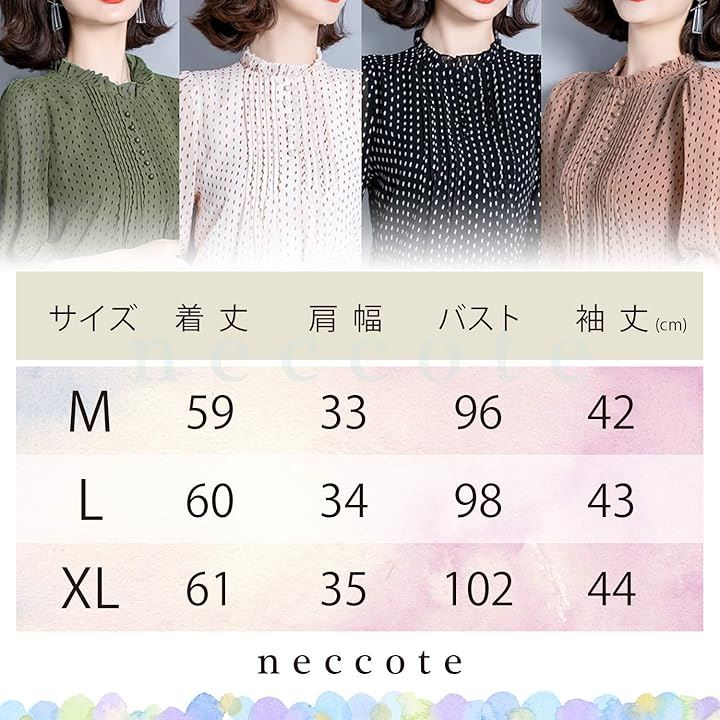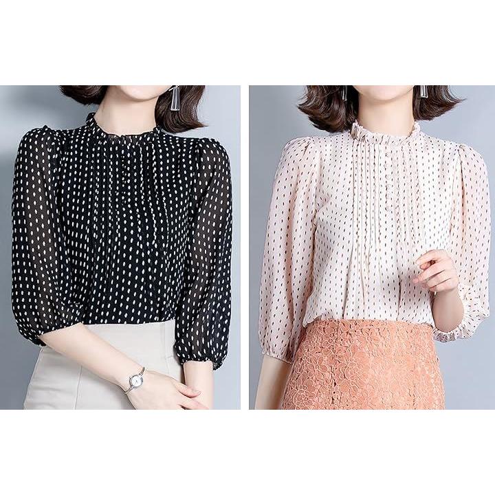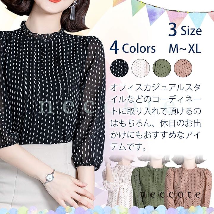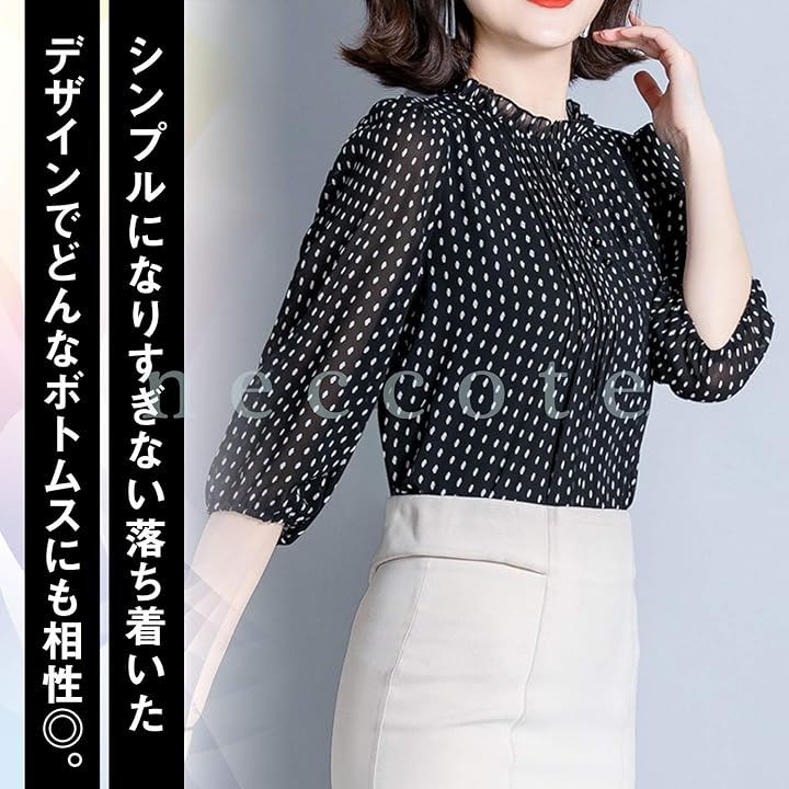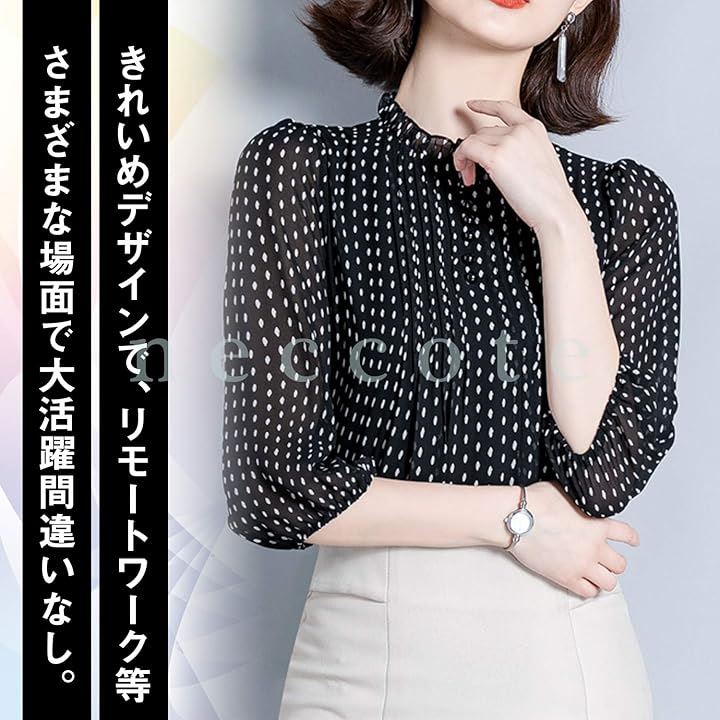 [ネコート] ドット ブラウス シャツ カットソー オフィス テレワーク フリル カラー シフォン 春 はる 夏 なつ レディースシャツ 春夏 はるなつ 通勤 大人 長袖 ボタン トップス ビジネス |