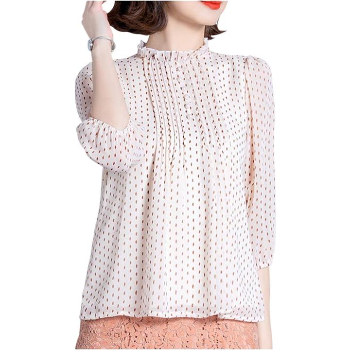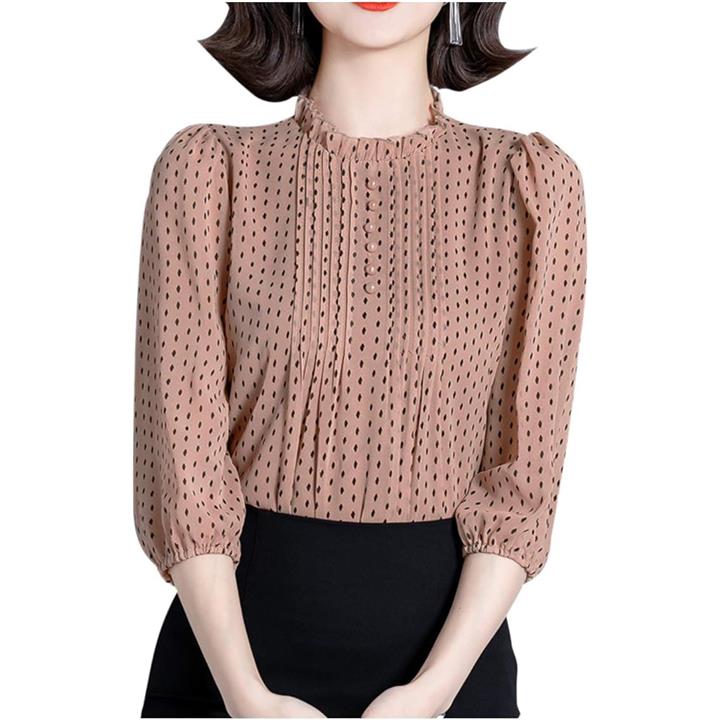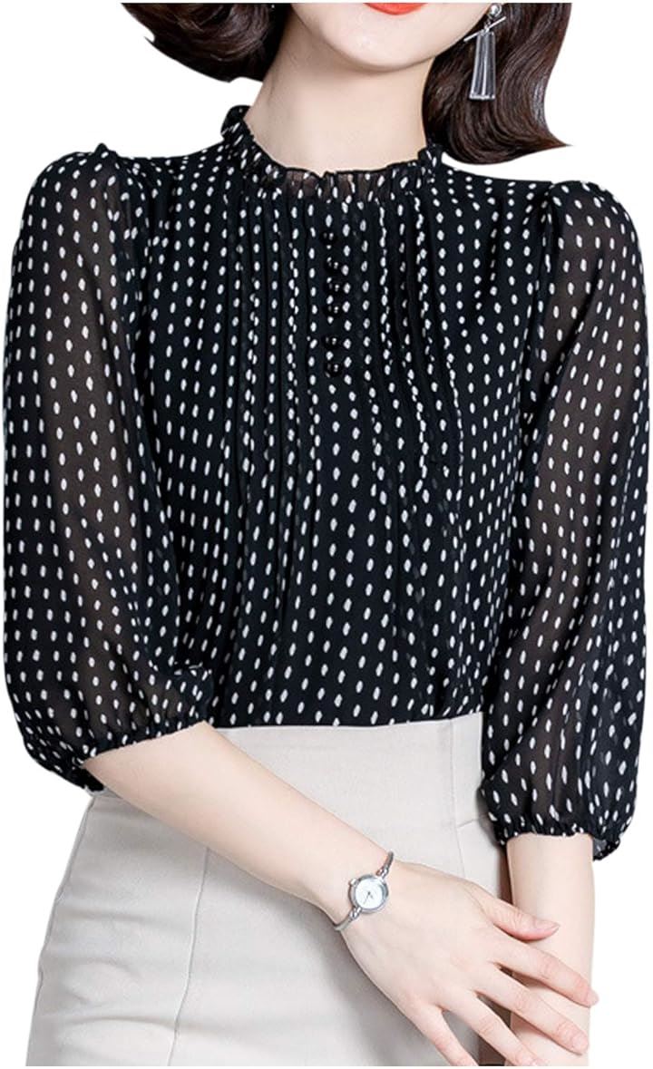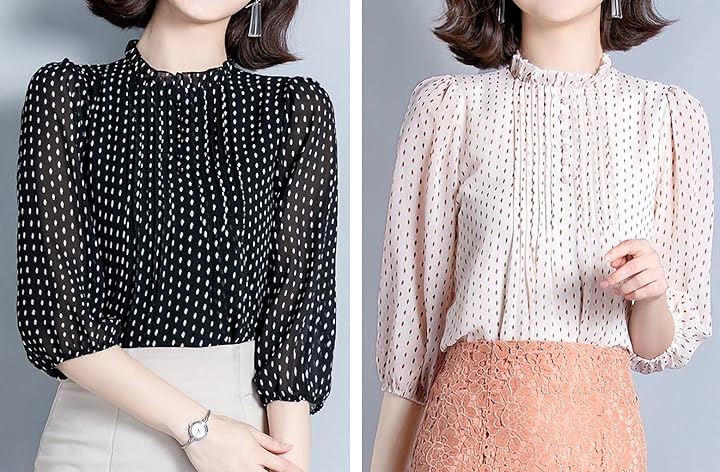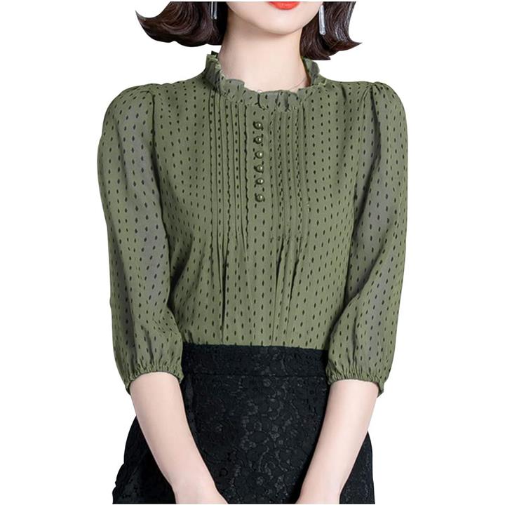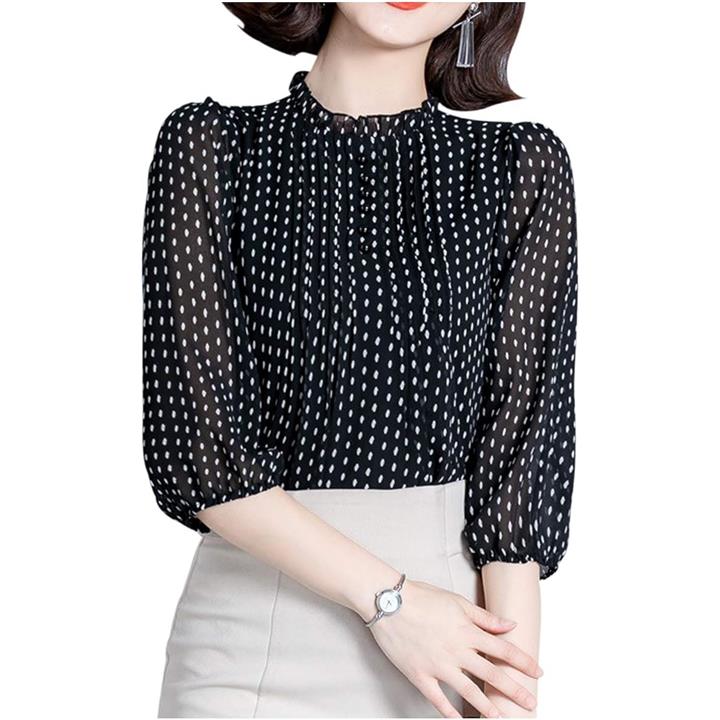 [ネコート] ドット ブラウス シャツ カットソー オフィス テレワーク フリル カラー シフォン 春 はる 夏 なつ レディースシャツ 春夏 はるなつ 通勤 大人 長袖 ボタン トップス ビジネス |