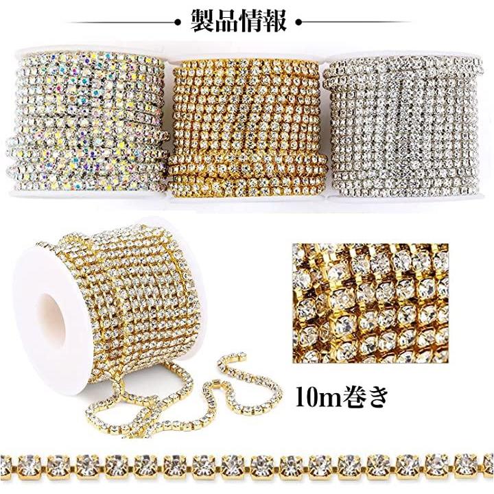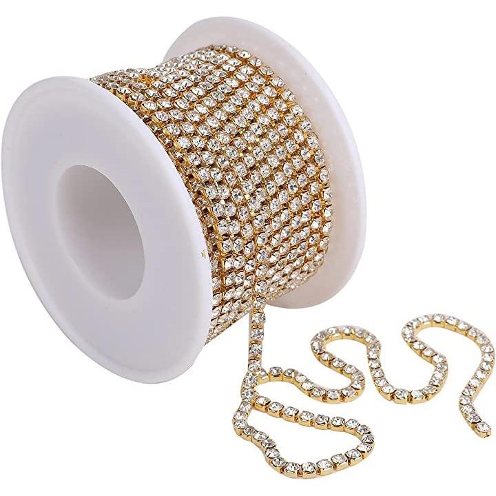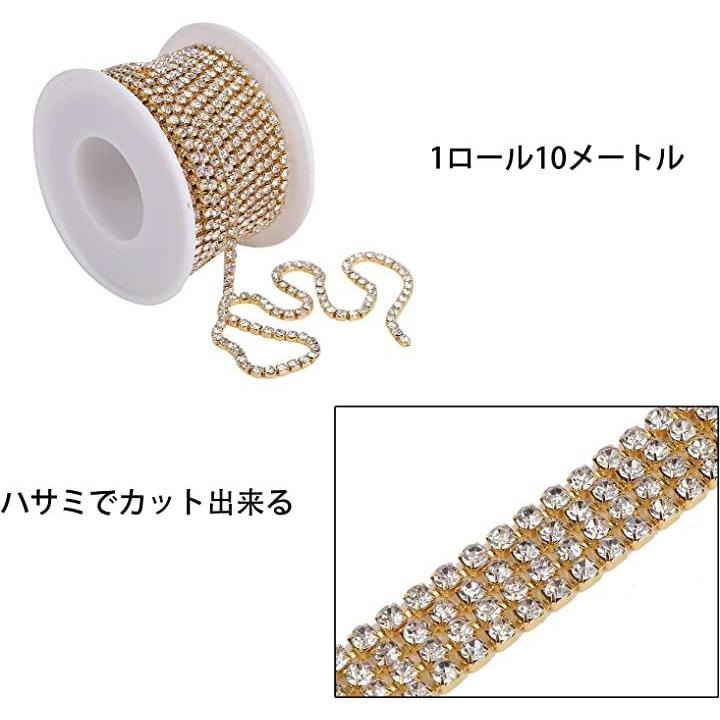 クリスタルチェーン ラインストーンチェーン 手作り 手芸 10メートル 2.5mm ゴールド