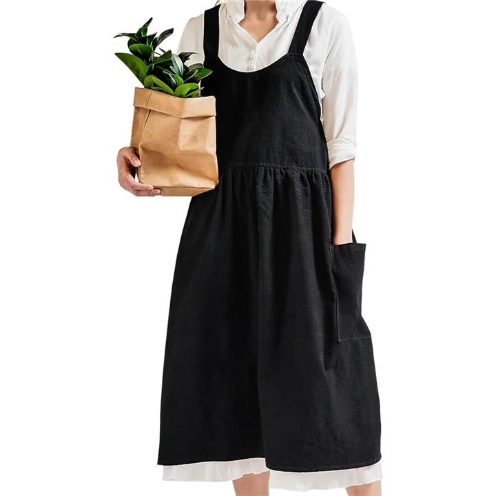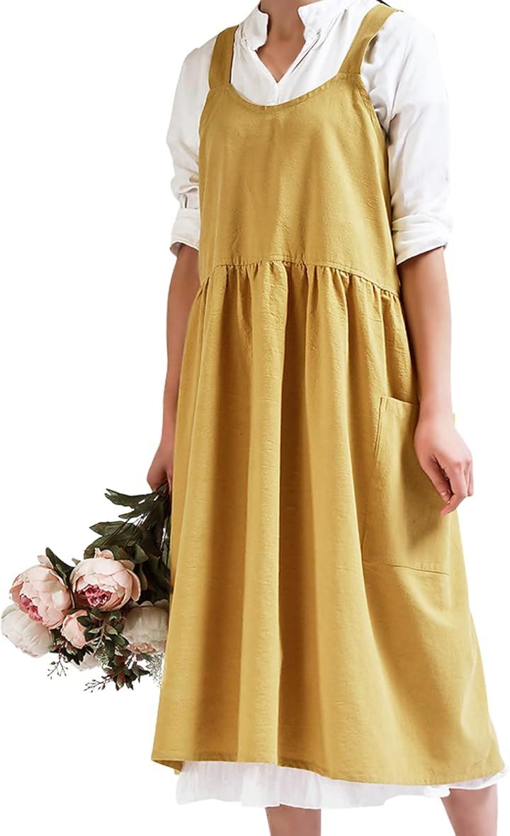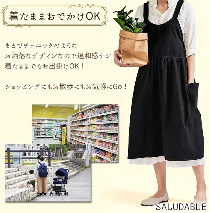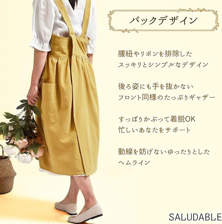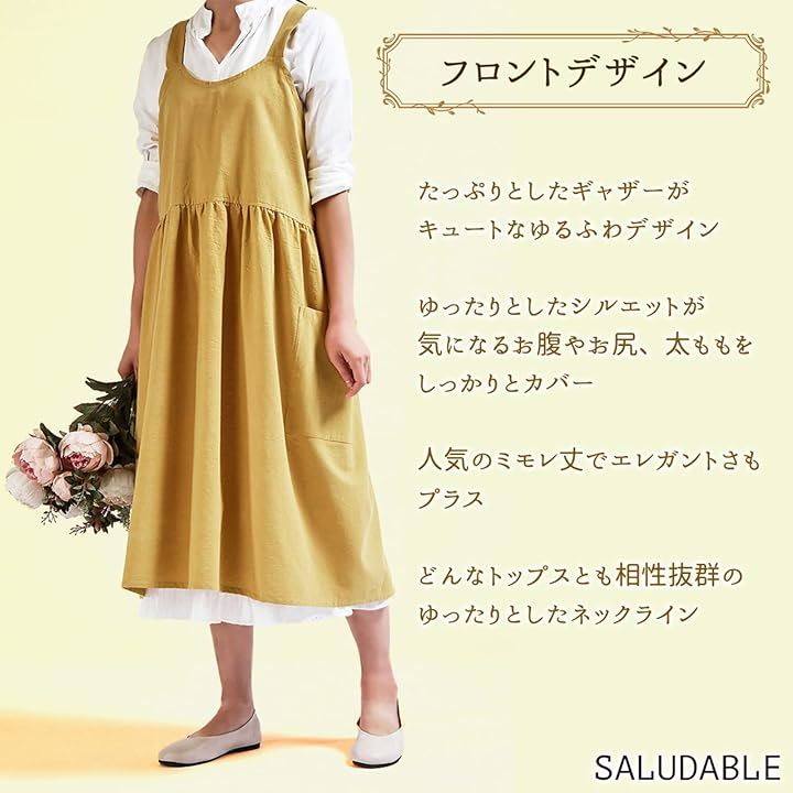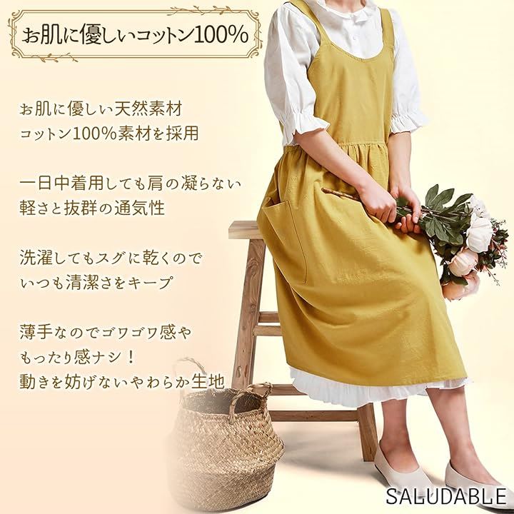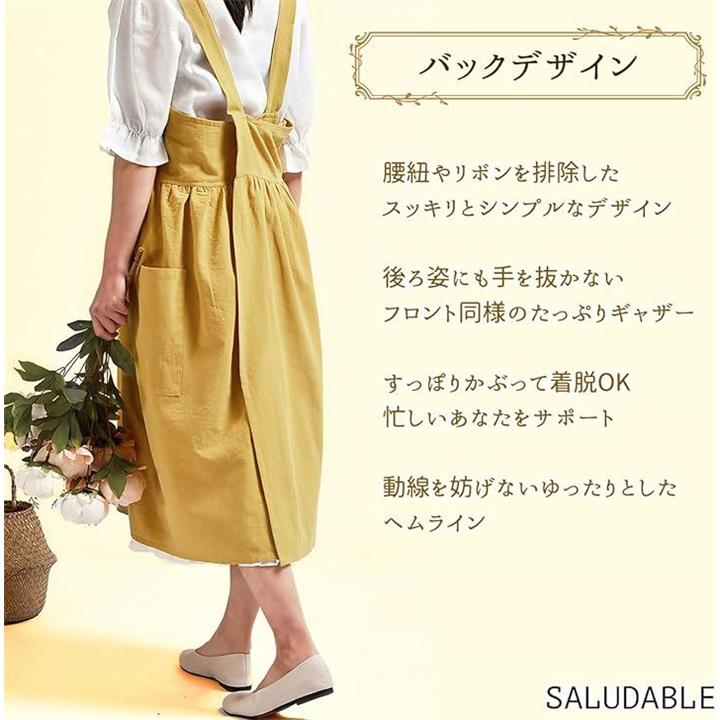 北欧風エプロン おしゃれでかわいい ワンピース H型 シンプル 保育士 ドレス コットン ナチュラル ロング丈 ポケット付き